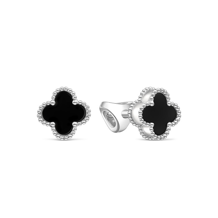 Совместные покупки Магнитогорск Ювелирные украшения и бижутерия Серьги — Серьги-пусеты Клевер Четырехлистник из серебра с чёрным агатом родированные 925
