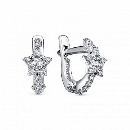Серьги с фианитом родированные серебро 925*