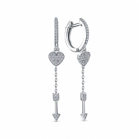 Серьги с фианитом родированные серебро 925*