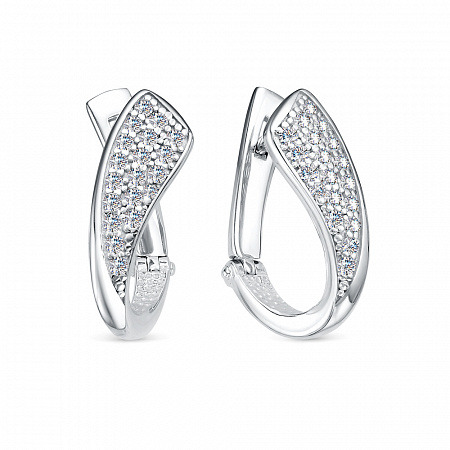 Серьги с фианитом родированные серебро 925*