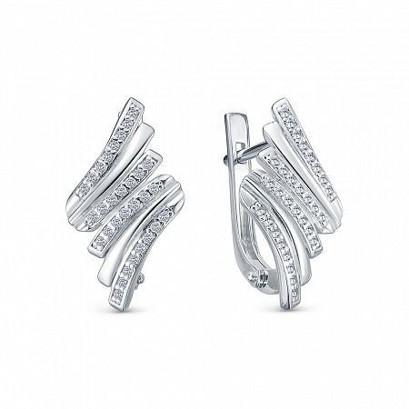 Серьги с фианитом родированные серебро 925*