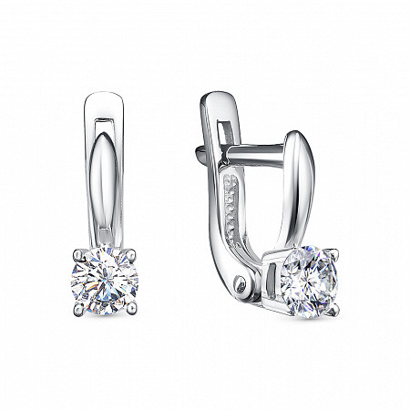 Серьги с фианитом родированные серебро 925*