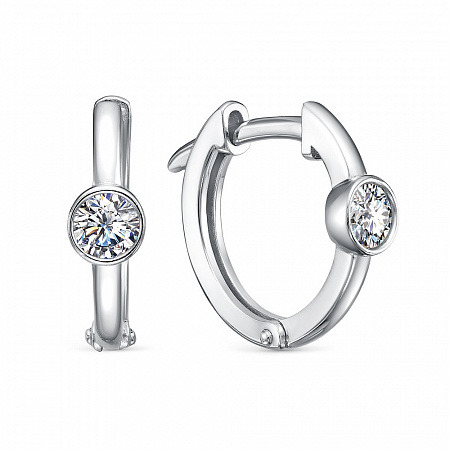 Серьги с фианитом родированные серебро 925*