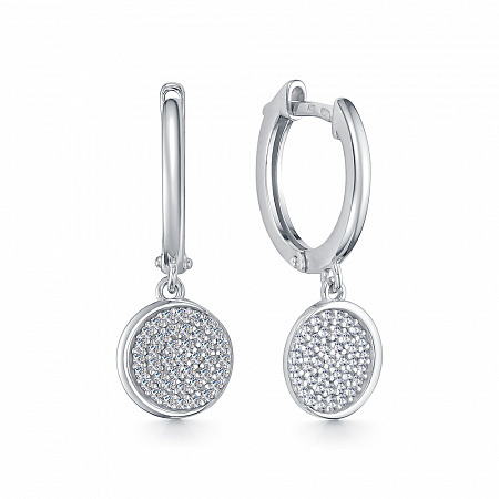 Серьги с фианитом родированные серебро 925*