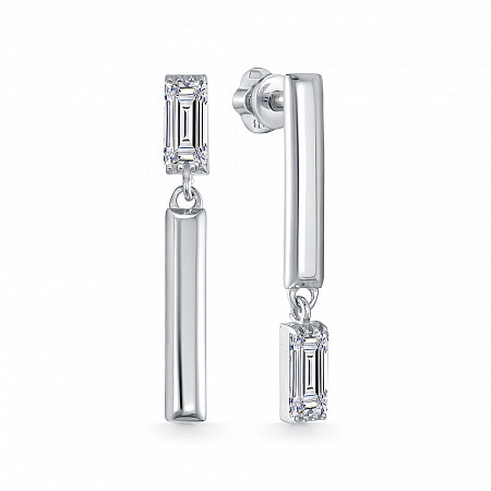 Серьги с фианитом родированные серебро 925*