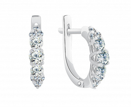 Серьги с фианитом родированные серебро 925*
