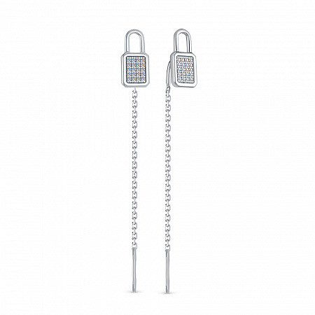 Серьги с фианитом родированные серебро 925*