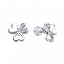Серьги с фианитом родированные серебро 925*