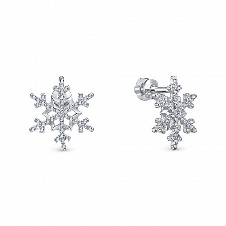 Серьги с фианитом родированные серебро 925*