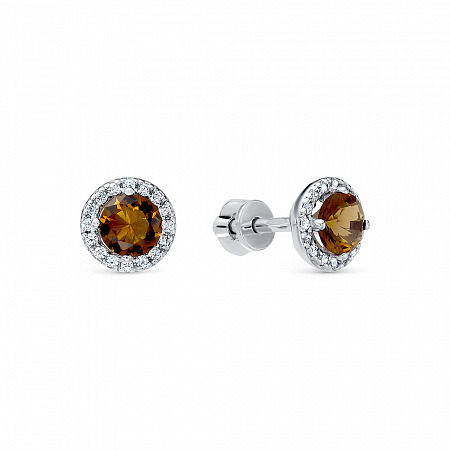 Серьги с фианитом родированные серебро 925*