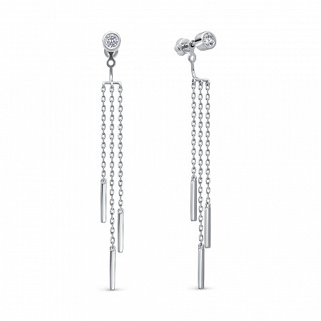 Серьги с фианитом родированные серебро 925*
