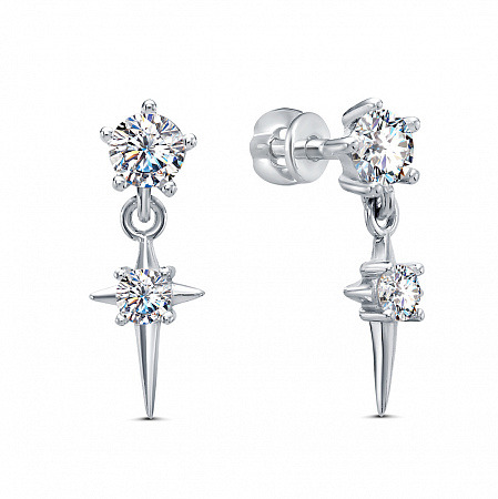 Серьги с фианитом родированные серебро 925*