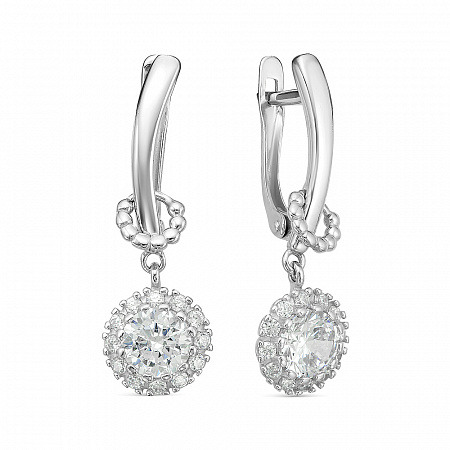 Серьги с фианитом родированные серебро 925*