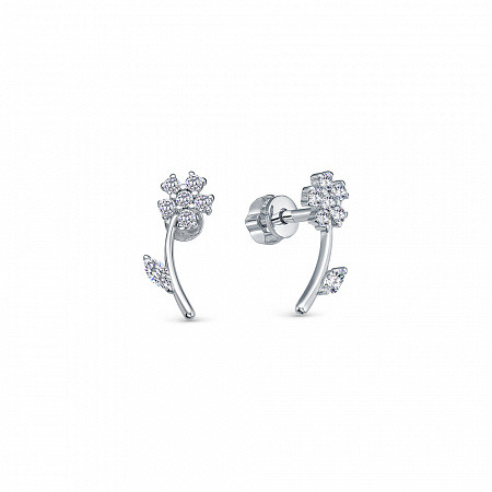 Серьги с фианитом родированные серебро 925*