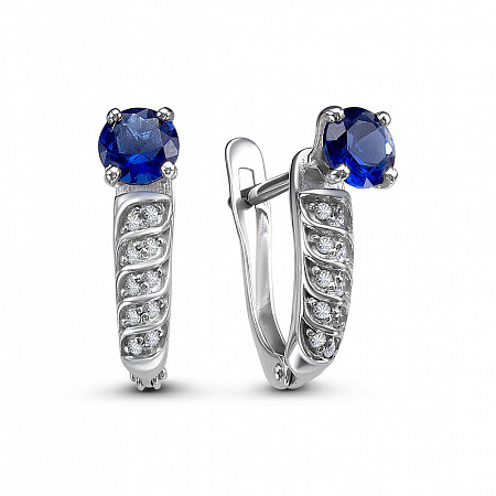Серьги с фианитом родированные серебро 925*