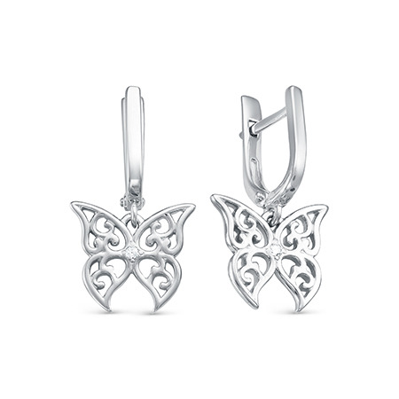 Серьги с фианитом родированные серебро 925*