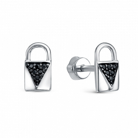 Серьги с фианитом родированные серебро 925*