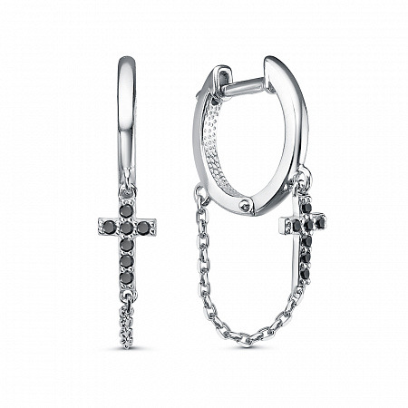 Серьги с фианитом родированные серебро 925*