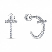 Серьги с фианитом родированные серебро 925*