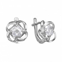 Серьги с фианитом родированные серебро 925*