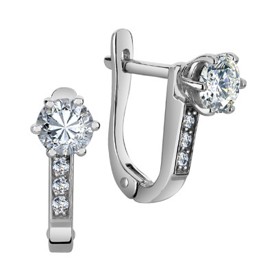 Серьги с фианитом родированные серебро 925*
