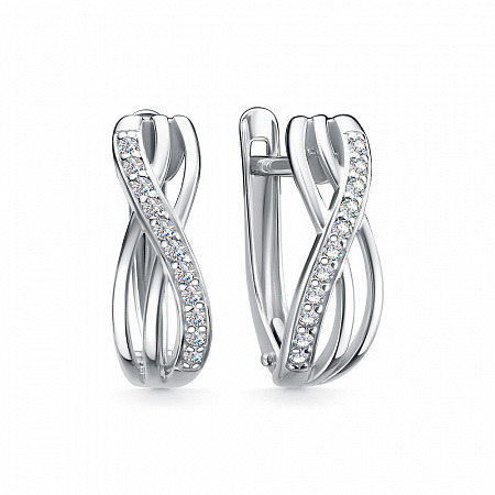 Серьги с фианитом родированные серебро 925*
