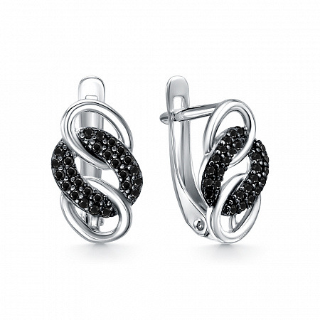 Серьги с фианитом родированные серебро 925*