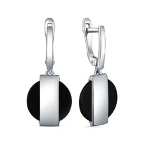 Серьги из серебра с чёрным агатом родированные 925 пробы С-4536-Р-Ча
