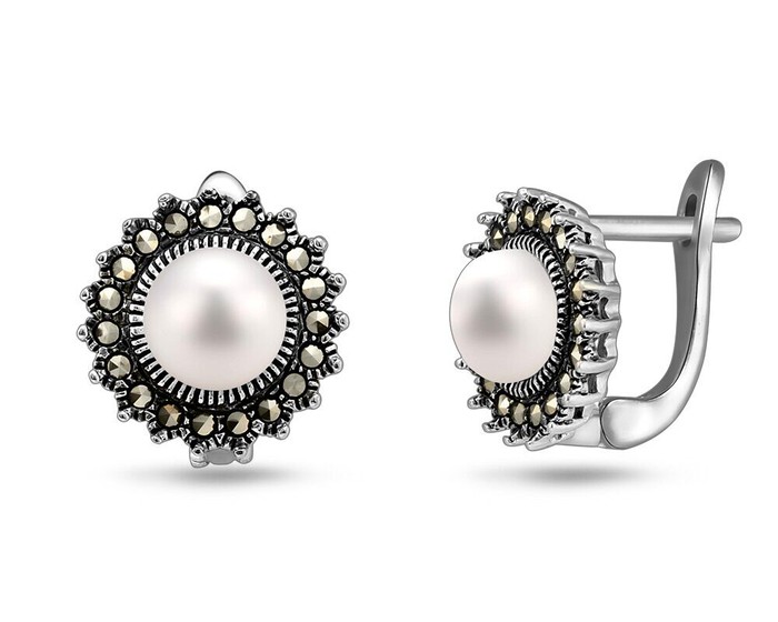Серьги, арт.655005 Серебро Серебро 925, 6,91 гр., жемчуг , марказит