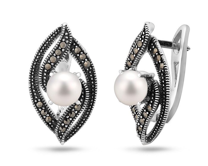 Серьги, арт.656496 Серебро Серебро 925, 7,74 гр., жемчуг , марказит