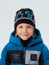 Двойная шапочка для мальчиков с забавными острыми ушками с петельками на концах. Верхний слой связан из полушерстяной мериносовой пряжи, подклад выкроен из хлопкового полотна и полностью пришит, утеплитель - изософт. Спереди - фирменный лейбл. Аккуратные завязки без узлов и наконечников.