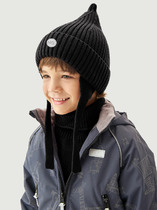 Милая шапочка-капор для малышек на холодную зиму с подворотом. Манишка застегивается на пуговку. Спереди вывязан рельефный рисунок в виде косы. Верхний слой связан из полушерстяной мериносовой пряжи. Подклад выкроен из хлопкового полотна и полностью пришит. Утеплитель изософт. На макушке два небольших помпона. Они привязаны, можно отвязать.