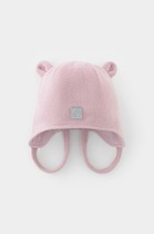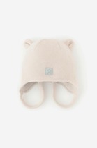 Милая шапочка-капор для малышей на холодную зиму с подворотом. Манишка застегивается на пуговку. Спереди вывязан рельефный рисунок в виде косы. Верхний слой связан из полушерстяной мериносовой пряжи. Подклад выкроен из хлопкового полотна и полностью пришит. Утеплитель изософт. На макушке два небольших помпона. Они привязаны, можно отвязать.