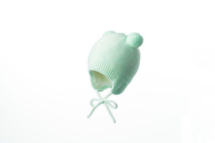 Теплая зимняя шапочка для малышей и малышек. Верхний слой связан из полушерстяной пряжи, подклад связан из 100% хлопка. Утеплитель - изософт. Благодаря хлопковому подкладу можно носить без чепчика. Шапочка отлично тянется и совершенно не колется. Макушка украшена двумя помпонами.