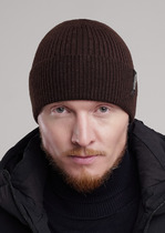 мужская классическая шапка по голове с отворотом. Связана из хлопка с добавлением вискозы, что придает шапке комфортное ощущение при носке. Металлический логотип.