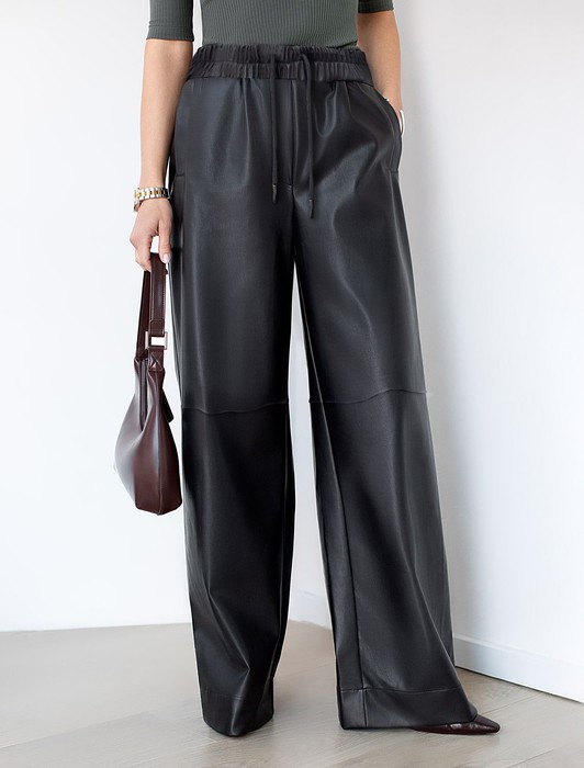 Совместные покупки Магнитогорск Женская одежда Футболки — Широкие кожаные брюки-трубы с поясом