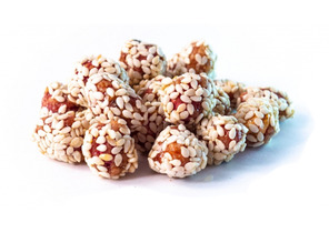 Молочный шоколад с добавлением затяжного малинового печенья в форме рыбок.