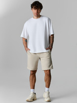 Шорты мужские из пластичного однотонного трикотажного полотна в рубчик, приятного к телу. Модель свободная, с боковыми карманами с обтачными входами, на притачном поясе с отстроченной эластичной тесьмой.