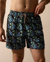 Шорты мужские из трикотажного полотна "кулирка" с набивным рисунком, удлиненные, на притачном поясе с эластичной тесьмой внутри, с карманами в боковых швах, входы в которые окантованы основным материалом.