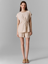 Шорты – женские из гладкокрашеного тканого полотна, свободные, длиной выше колена, с карманами в боковых швах и двумя заложенными складками по талии, на притачном поясе с эластичной тесьмой внутри. Средний шов передних половин обработан имитацией «гульфика».