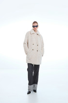 Пальто женское демисезонное, однобортное, прямого силуэта, длинное. Перед с функциональными карманами «щель». Рукав длинный, одношовный. Воротник и лацкана отложные. Пальто из мехового трикотажного полотна, на подкладке, с застежкой на 3 пришивных кнопки. В комплекте пояс.