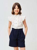 Блузка из смесового хлопка, полуприлегающего силуэта с отложным воротником и длинными рукавами с манжетами. Высокое содержание хлопка в составе обеспечивает отличную воздухопроницаемость и комфорт в повседневной носке. Центральная супатная застёжка на планку с пуговицами. Воротник украшен вышивкой ""кошка"". Отличный вариант для повседневной носки.