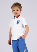 Поло из 100% хлопка с длинными рукавами, отложным воротником рубашечного типа, с центральной укороченной застежкой по переду на пуговицы. По краю воротника расположена контрастного цвета полоса.