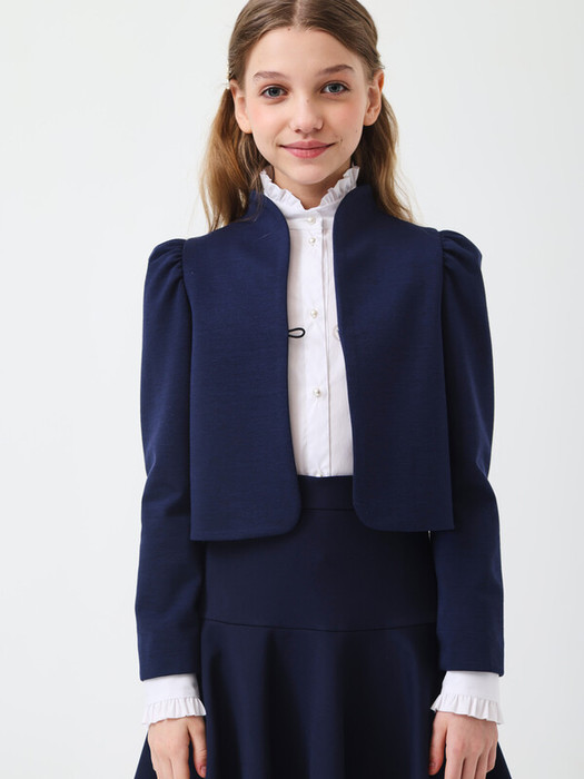 Укороченный жакет для девочек идеально подойдет для школы. Модель удачно впишется в школьный дресс-код, сочетая строгие линии с современным дизайном.