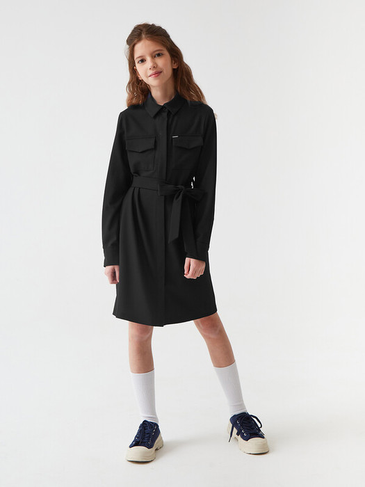 Платье с накладными прямоугольными карманами, которые не только добавляют функциональности, но и служат украшением. Длинные рукава на манжетах придают образу завершенность и защиту от холода в прохладную погоду.