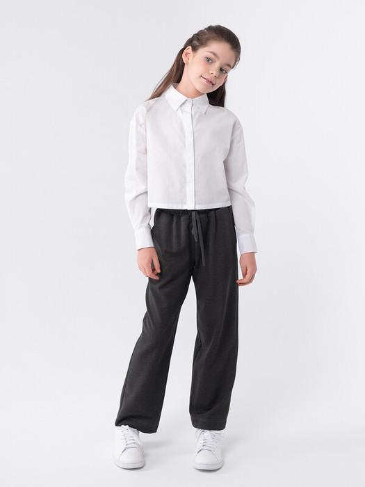 Брюки палаццо для девочек изготовлены из немнущейся костюмной ткани высокого качества, которая идеально подходит для брюк данного фасона. Расширяющийся от пояса силуэт, высокая талия и пояс на резинке не стесняют движений. Для регулировки объема пояс дополнен шнуром. Брюки имеют карманы достаточной глубины. "