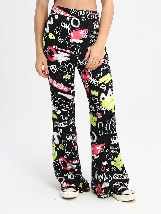 Брюки изготовлены из качественных материалов, обеспечивающих комфорт как в жару, так и в прохладную погоду. Они выполнены в стиле граффити с текстовыми надписями для создания трендового образа. Брюки легко стираются, быстро сохнут и не требуют особого ухода.