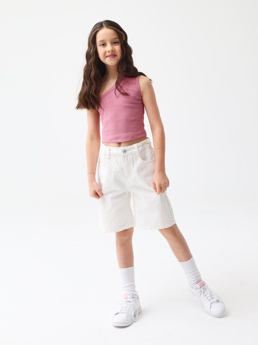 Асимметричный укороченный базовый топ в рубчик. Мягкий трикотаж из смесового хлопка. Размерный ряд 128 – 176 см.