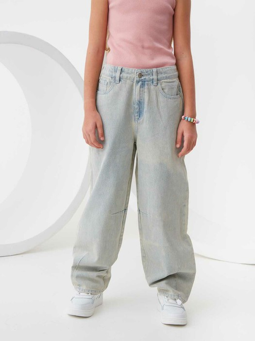 Джинсы Slouchy с вытачками на коленях и по низу. Плотный деним из 100% хлопка с винтажной стиркой и потертостями. Свободный крой со слегка зауженными к низу брючинами полной длины. Высокая посадка талии и пояс с внутренней регулируемой резинкой. Застежка на молнию и пуговицу, шлевки для ремня, пять карманов. Размерный ряд 128 – 176 см.