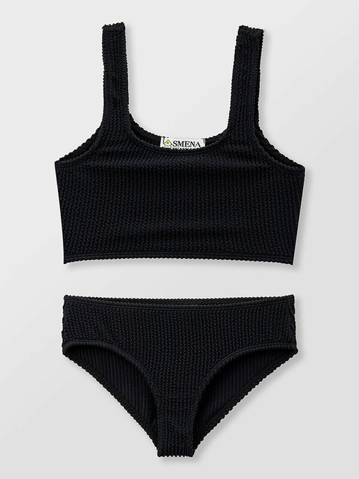 Купальник раздельный  для девочки из эластичной жатой ткани. Передняя часть топа и плавок продублирована мягкой трикотажной тканью.